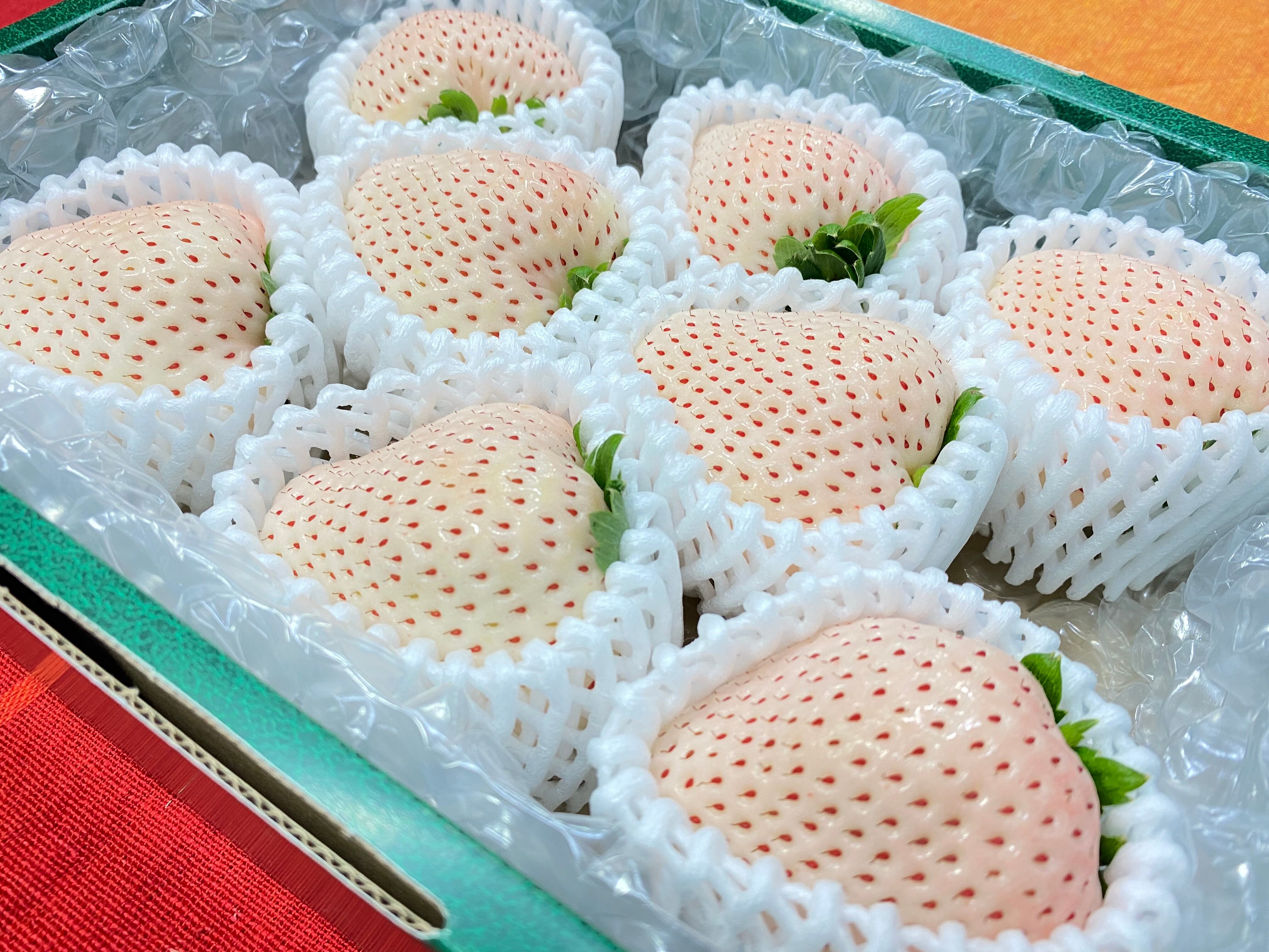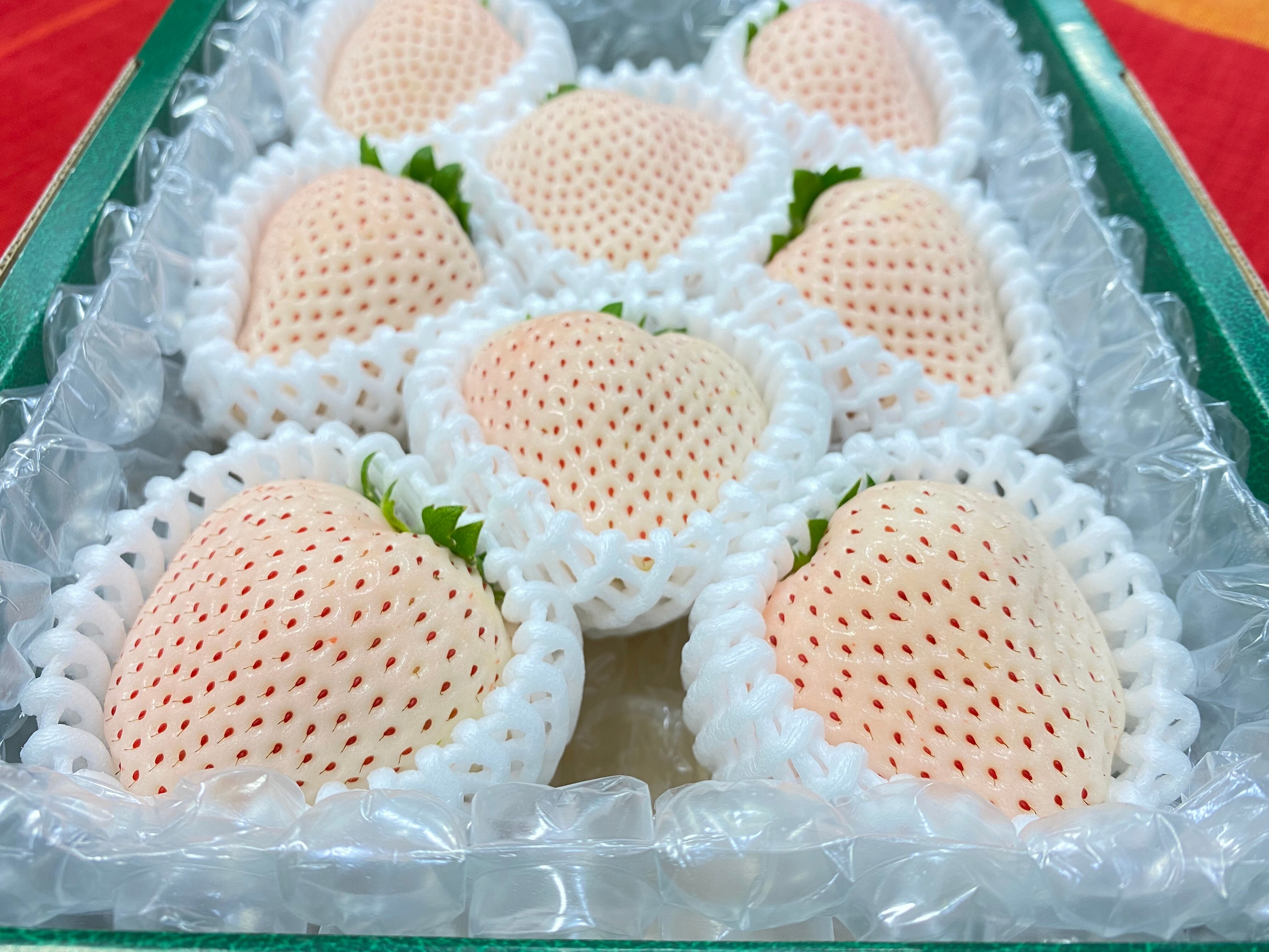 ※完熟の白いちごは製品の特性上、輸送中に発生する微細な揺れでいちごの裏面の皮が僅かな摩擦により黄色くなる場合がございますが、品質には全く問題ございません。あらかじめご了承下さい。